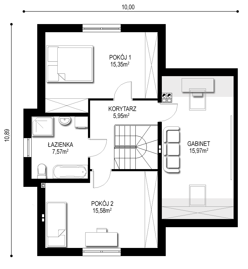 Rzut piętra – 60,42m2: