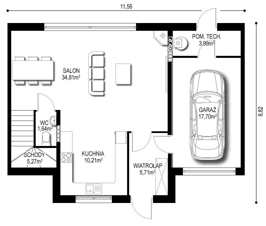Rzut parteru – 79,33m2: